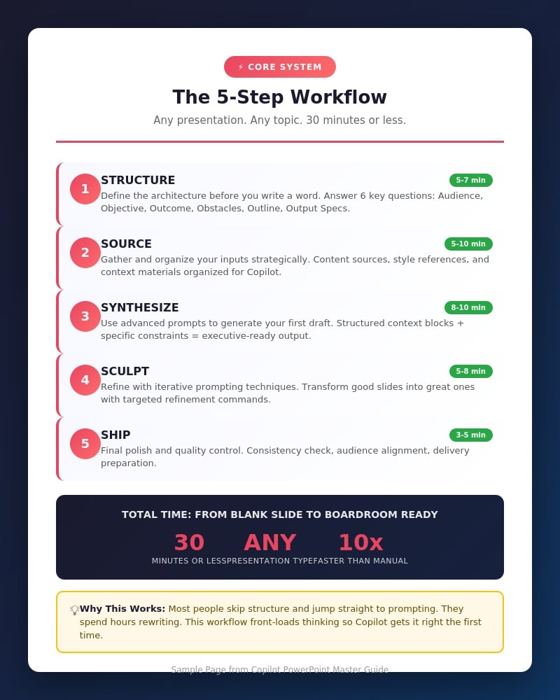 Create any professional presentation in 30 minutes using the complete Copilot workflow system used by executives, consultants, and high-performing teams.