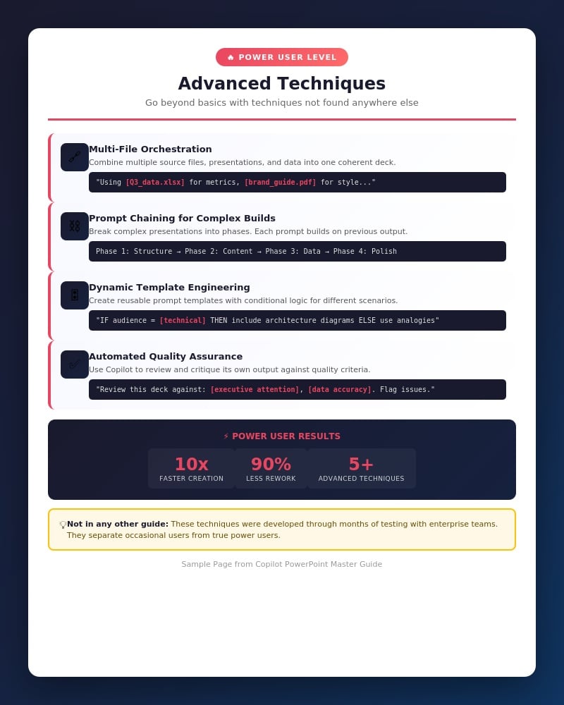 You tried them. Copilot still gave you: - Generic slides you had to rewrite - Wrong structure that missed the point - Output that looked “AI-generated” - Inconsistent results every time