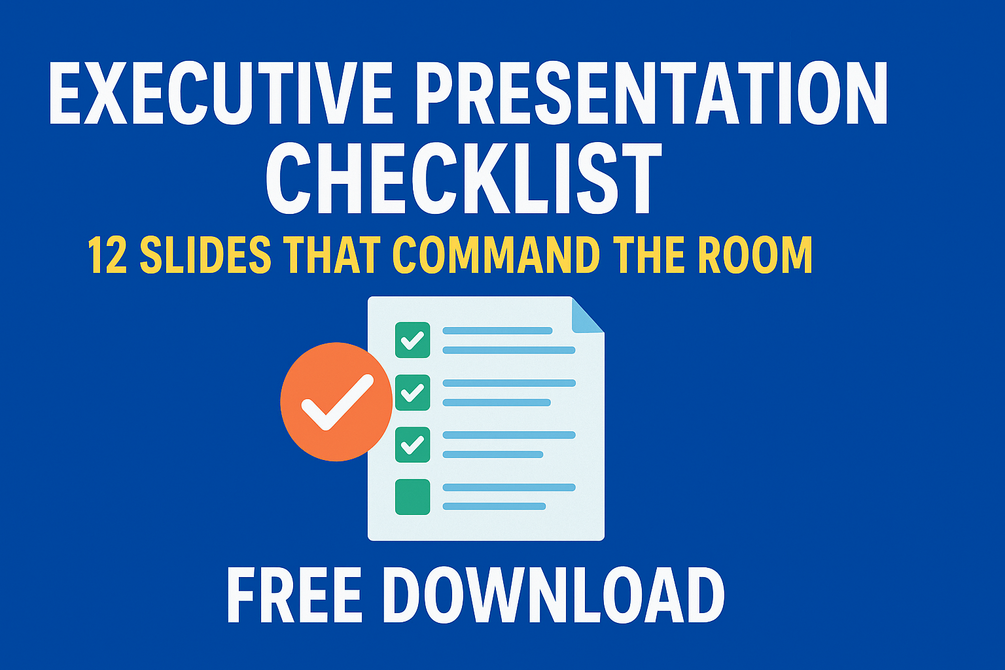This checklist gives you theĀ 12-slide blueprintĀ used by high-performing leaders to win approvals, drive decisions, and command the room in any senior-level presentation.